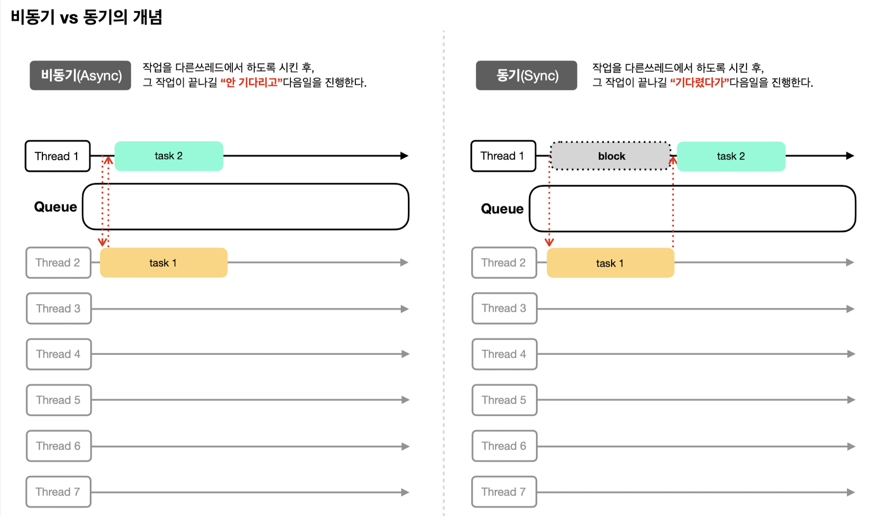 | 대표 사용 | 일반 계산, UI 변경 등 | 네트워크 요청, 파일 IO 등 |