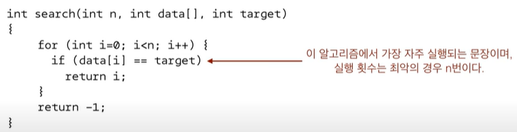 ->가장 자주 실행되는 연산 혹은 문장의 실행횟수를 고려하면 됨!