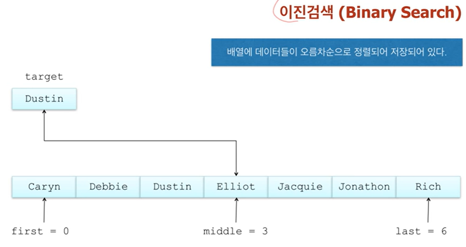 이번 시간에는 이진검색과 정렬에 대해 배웠다.