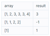 // 최빈값이 하나면 그 값을 반환, 여러 개면 -1 반환