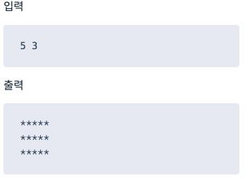 별(*) 문자를 이용해 가로의 길이가 n, 세로의 길이가 m인 직사각형 형태를 출력해보세요.